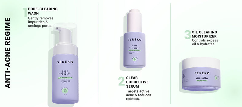 This 3-step routine is specially designed to target stress-related breakouts. It helps reduce active acne, control excess oil, unclog pores, fade dark spots, and smooth skin texture, leaving your skin clear, calm, and balanced